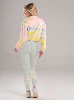 leggins deportivo dama sublimado con elástico interno para mejor ajuste, pretina en punta para mejor apariencia y alta para mayor compresión. con triangulo en entrepierna que evita marcaciones y mayor comodidad en los movimientos, tela firme de secado rápido