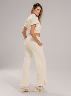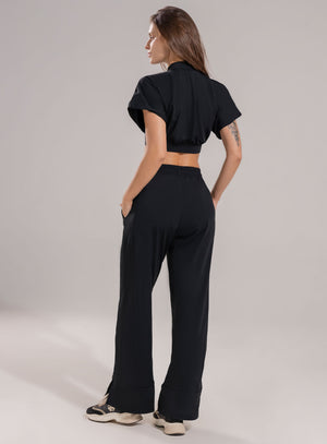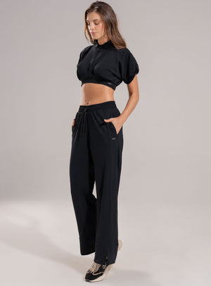 Este pantalón deportivo cuenta con un corte de pierna ancho y fluido, lo cual le da un aspecto moderno y casualmente sofisticado, es ideal para realizar actividades físicas, paseos al aire libre, viajes, o para recrear looks casuales con un toque de moda deportiva.