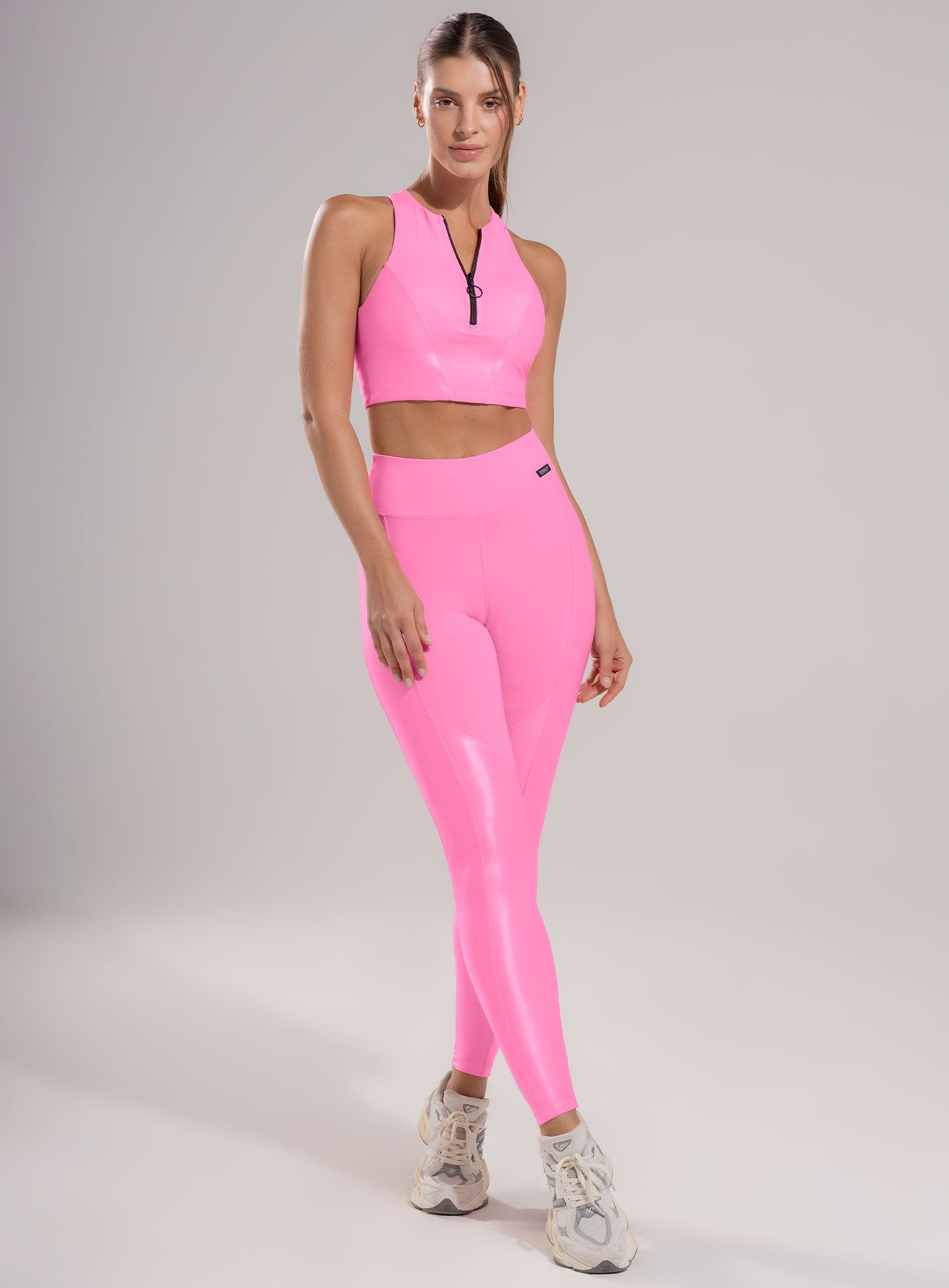 leggins deportivo dama en tela apariencia cuero con acabado mate y brillante, cortes en costados y frente, pretina en punta para mejor apariencia y alta para mayor compresión, con refuerzo en triangulo para evitar marcaciones y mayor comodidad en los movimientos es ideal para todo tipo de actividad física como yoga, pilates, correr y cycling.