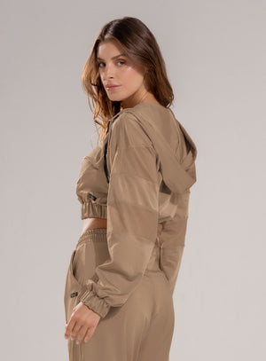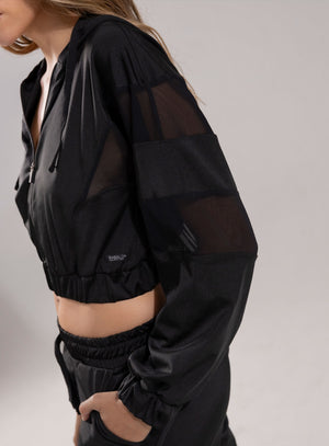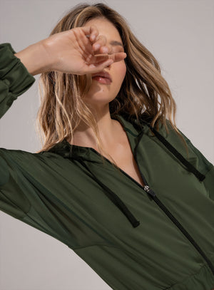 Esta chaqueta deportiva ofrece un diseño fresco y a la moda, gracias a sus cortes semi transparentes que permiten una mayor transpiración, ideal para cubrirse durante paseos al aire libre, actividades físicas o salidas casuales.