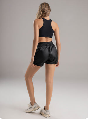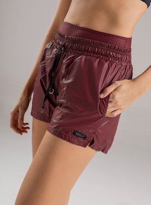 100% POLIÉSTER SHOR DEPORTIVO CON CORTES DECORATIVOS EN MALLA tejido con excelente caida y movimiento con diseño efecto brillante