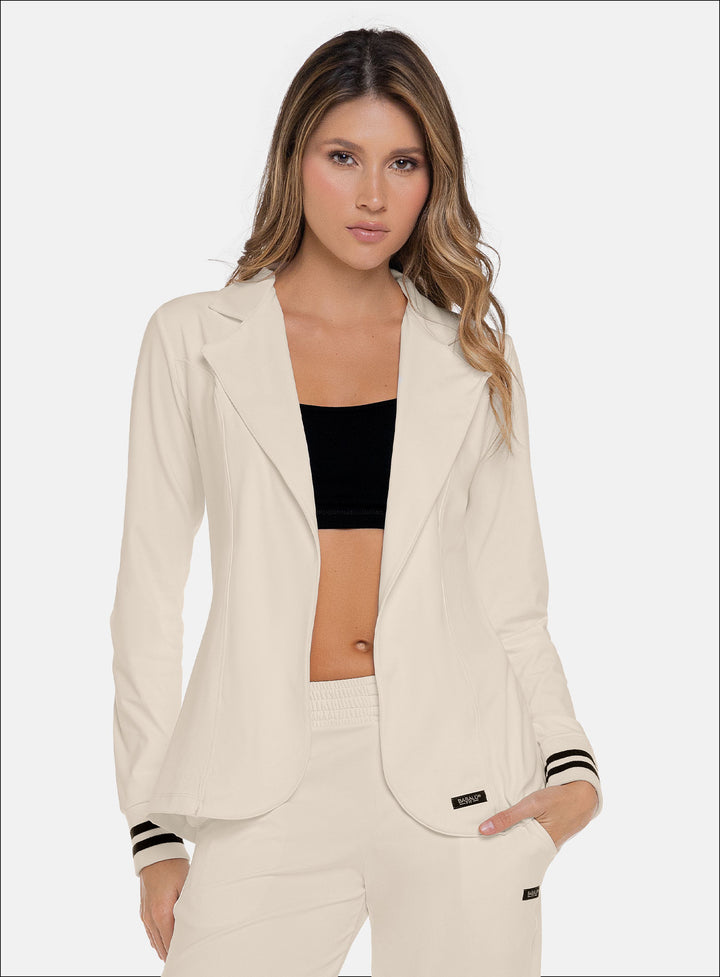 CHAQUETA TIPO BLAZER CON CORTE EN DELANTERO QUE LA HACE MAS CASUAL O DEPORTIVA CON PUÑO TEJIDO EN CONTRASTE LO QUE LE DA UN TOQUE MAS ATLÉTICO O NÁUTICO
