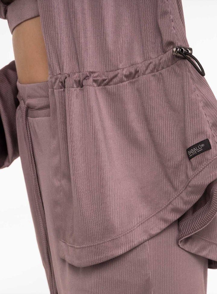 BLUSÓN EN TELA RIB, DESTACA POR SU TELA ACANALADA Y ELEMENTOS COMO SU CORDÓN ELÁSTICO QUE POR MEDIO DE TERMINALES PERMITE AJUSTAR LA CINTURA A LA MEDIDA DESEADA, CONSTRUYENDO ASÍ UN LOOK FRESCO Y MODERNO.