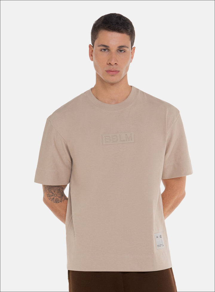 t-shirt masculina en silueta regular con un cuello de 2,5 cm elaborado en algodón 100% de