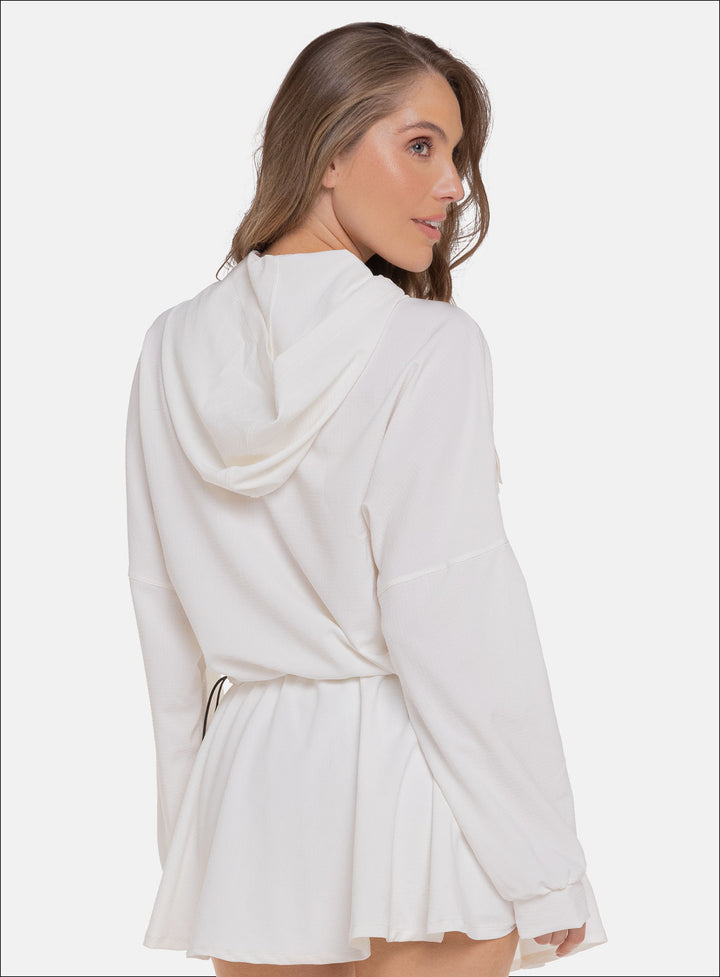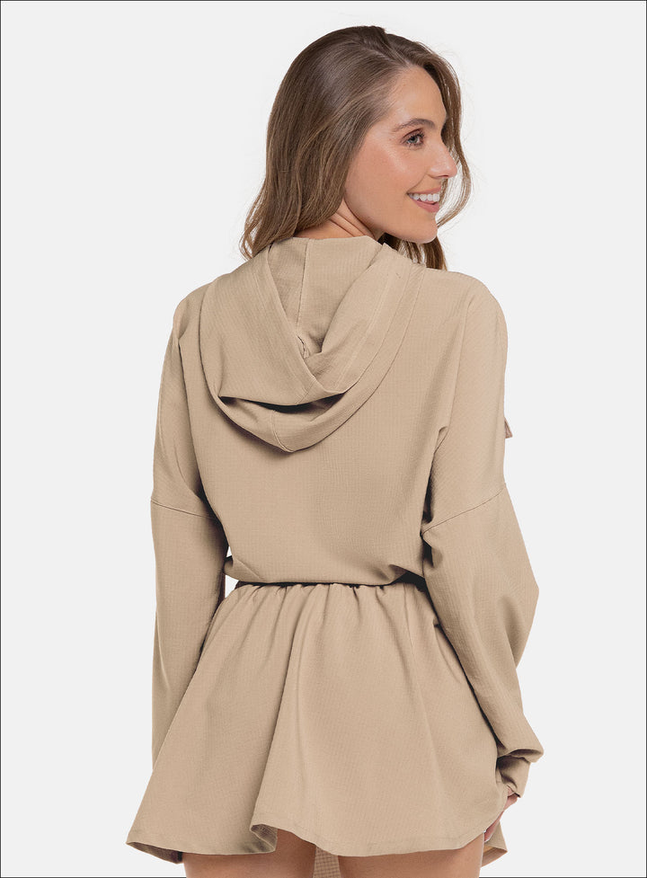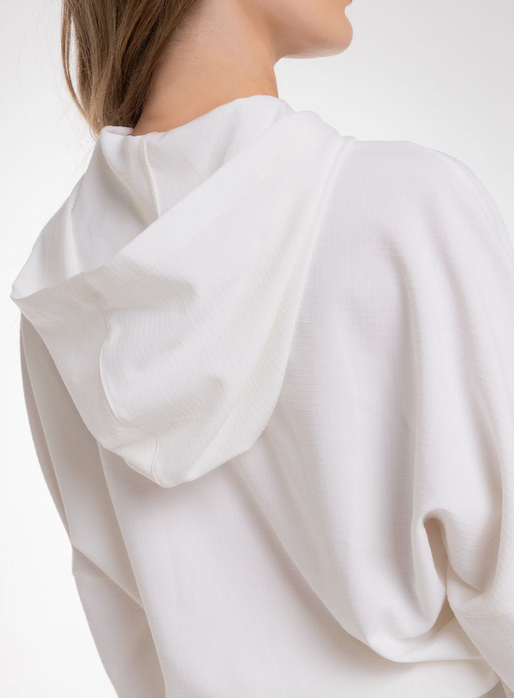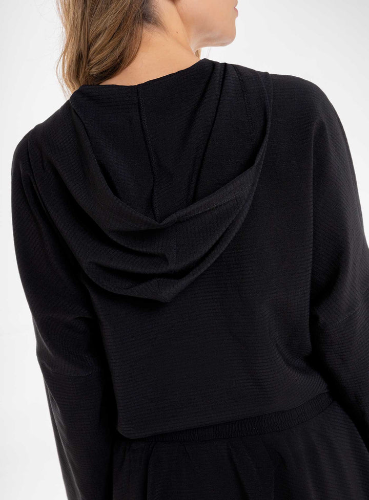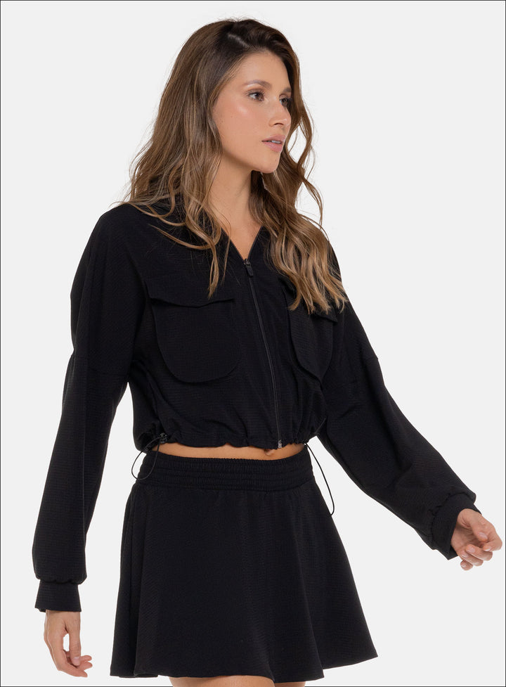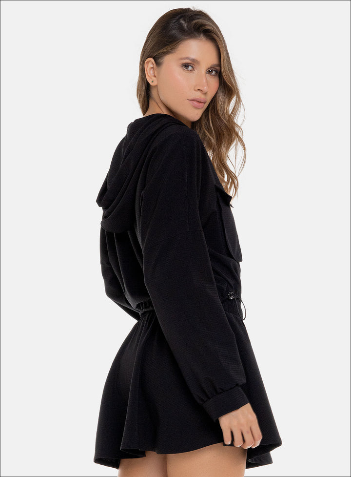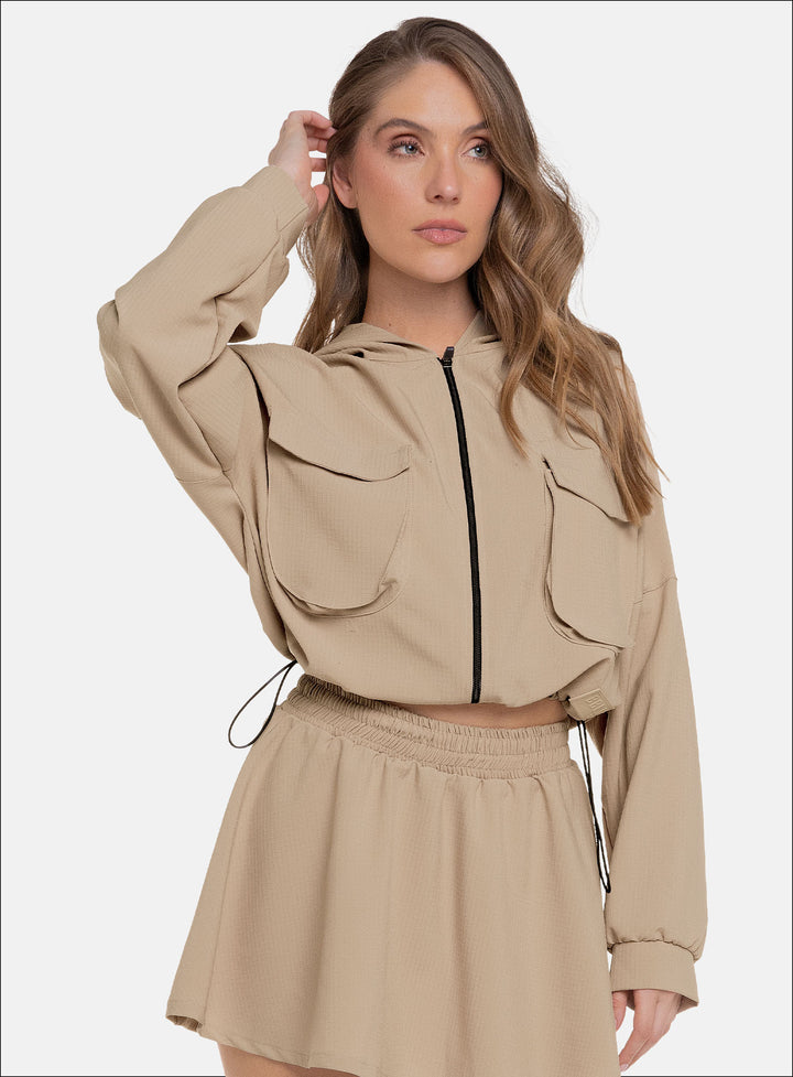 CHAQUETA CON CAPUCHA DE ESTILO MODERNO IDEAL PARA UN LOOK VERSATIL Y CASUAL PARA HACER EJERCICIO O SIMPLEMENTE PARA EL DÍA A DÍA, COMBINA BIEN CON PANTALONES DE TALLE ALTO O LEGGINS