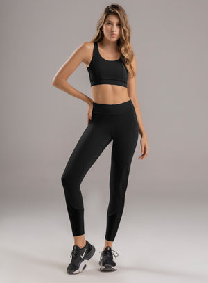 leggins deportivo dama con elástico interno para mejor ajuste, pretina en punta para mejor apariencia y alta para mayor compresión, piernas y pretina con cortes decorativos en tela con diseño, con refuerzo en triangulo para evitar marcaciones y mayor comodidad en los movimientos.