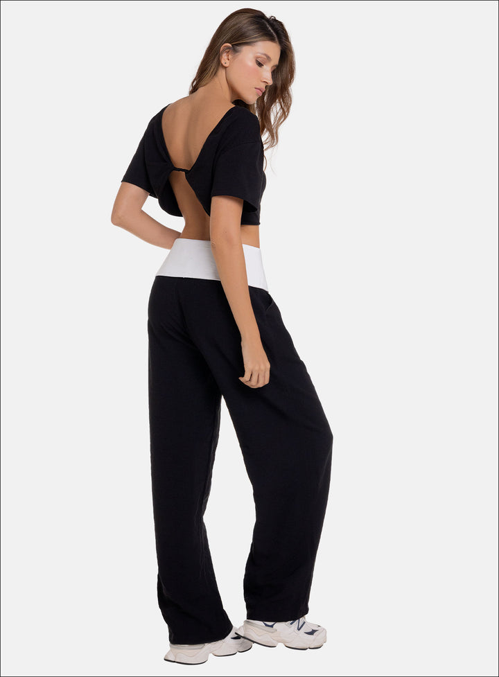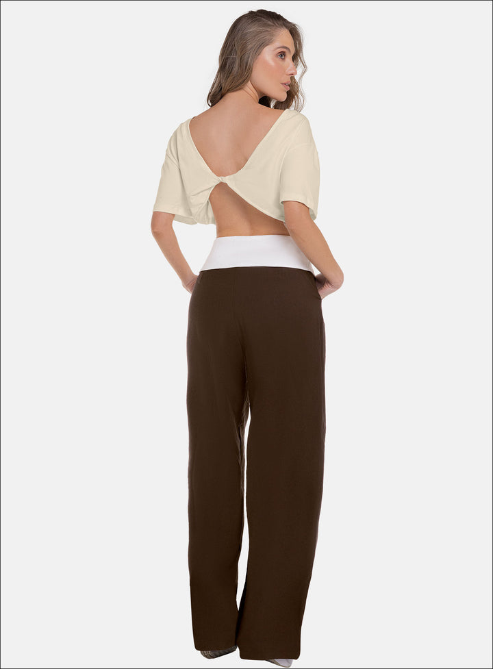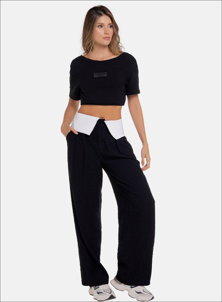 PANTALÓN AMPLIO CON AJUSTE RELAJADO Y FLUIDO EN TELA SIN ELONGACIÓN, CON UN DISEÑO CÓMODO Y VERSÁTIL, APTO PARA UN LOOK CASUAL, URBANO O ELEGANTE.