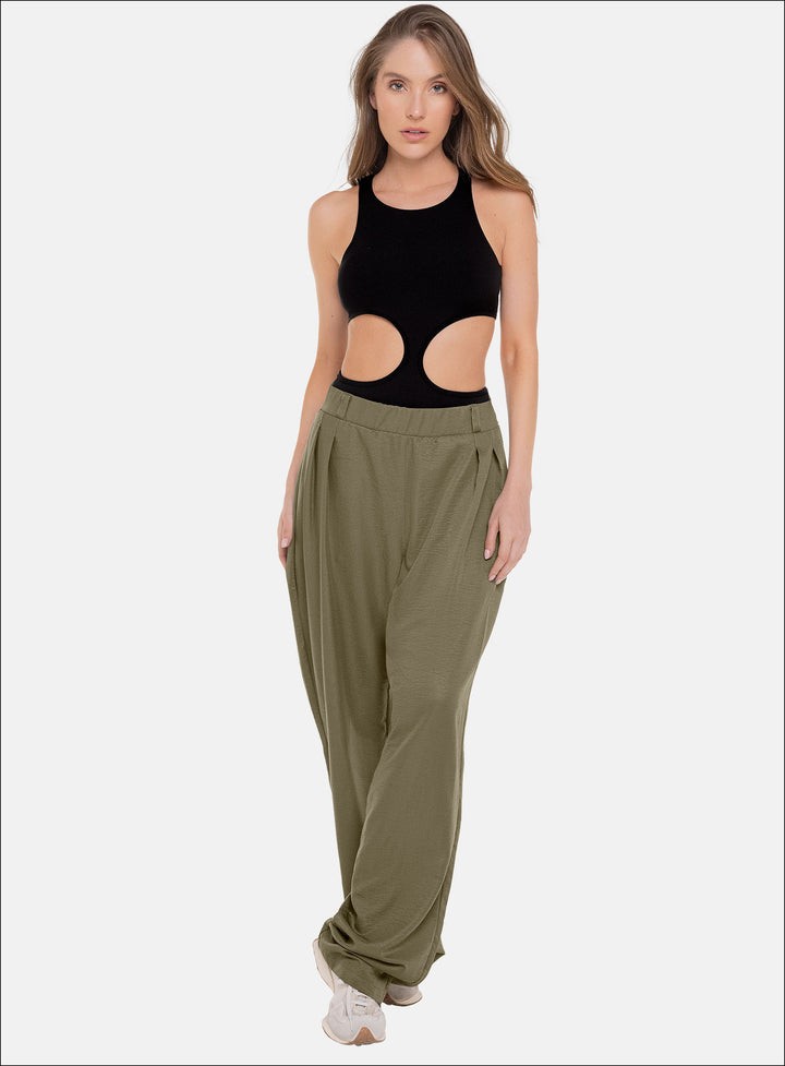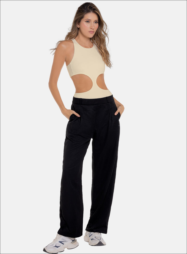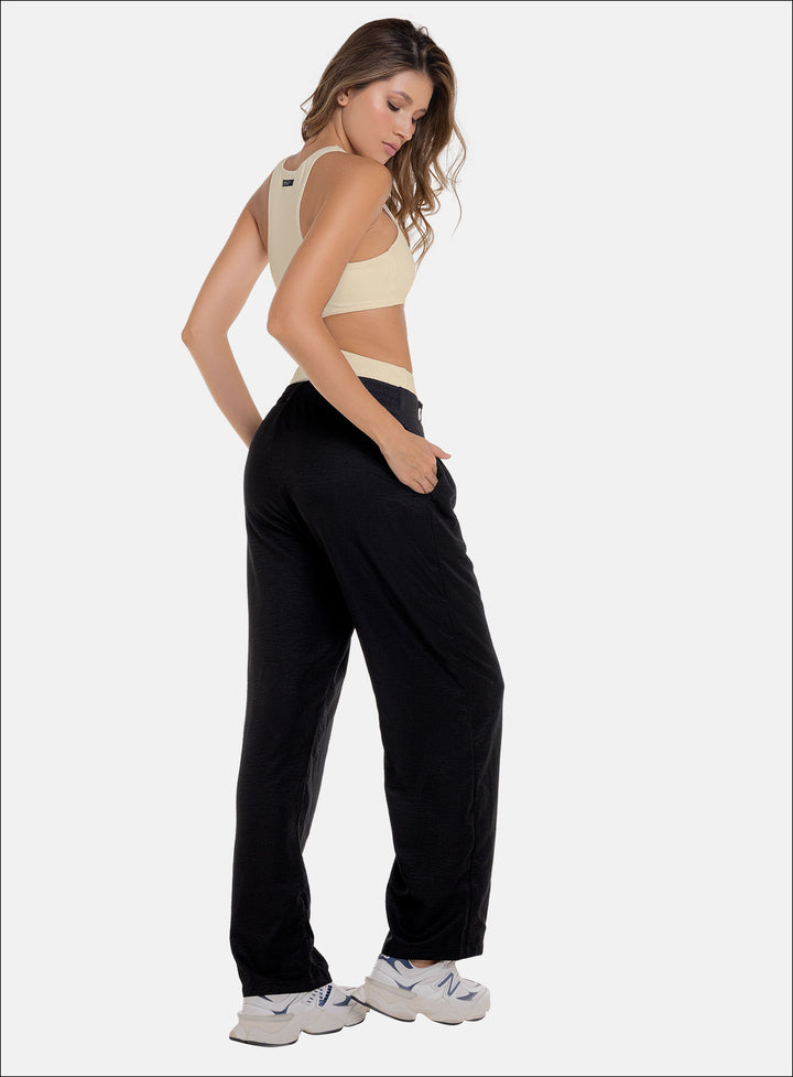 PANTALÓN DISEÑADO PARA UN RITMO DE VIDA ACTIVO Y FUNCIONAL, PROPORCIONA LIVERTAD DE MOVIMIENTO CON UNA SILUETA SUELTA Y FLUIDA QUE ESTILIZA TU FIGURA, EN TELA SIN ELONGACIÓN CON CINTURA RESORTADA EN POSTERIOR QUE GARANTIZA CONFORT DURANTE TODO EL DIA, IDEAL PARA UN LOOK URBANO, ELEGANTE, CASUAL O DEPORTIVO.