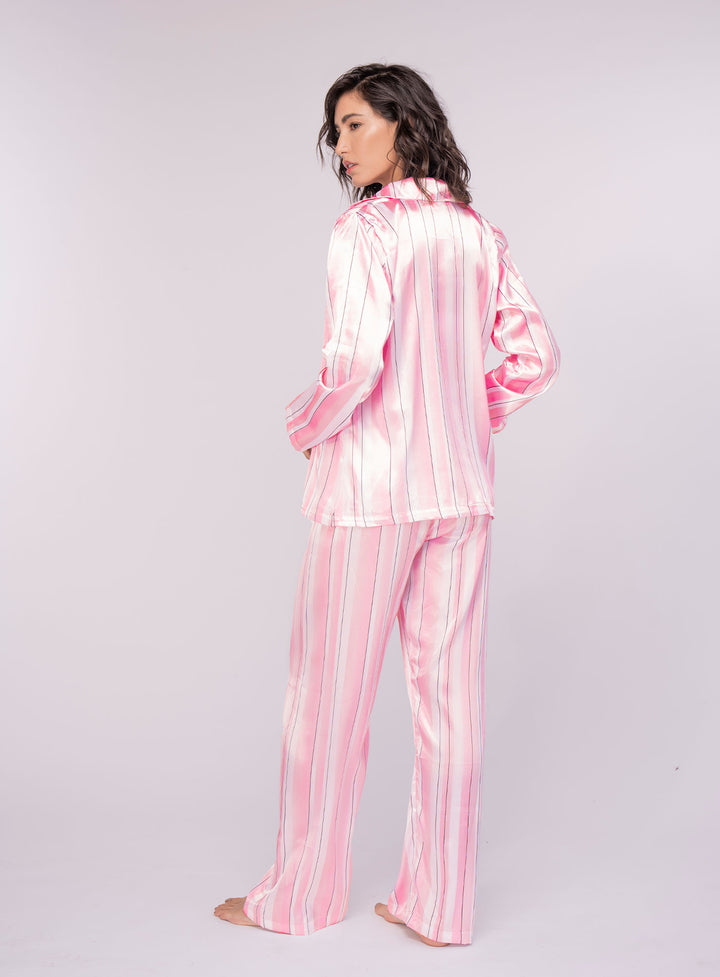 PIJAMA EN SATIN, CON SILUETA RELAJADA Y PRETINA ELASTICA PARA UNA APARIENCIA COMODA Y ELEGANTE
